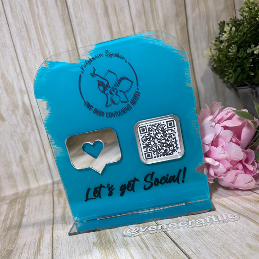 QR Code Sign. Social Media Sign. Lets Get Social. Customized QR code Display.