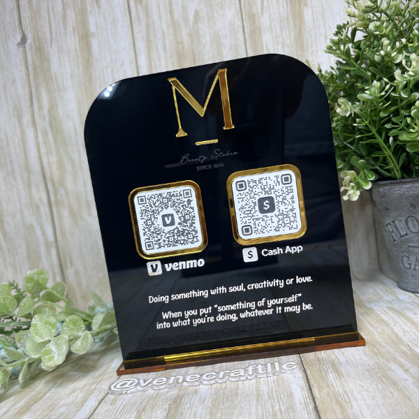 QR codes are made with engraved acrylic.